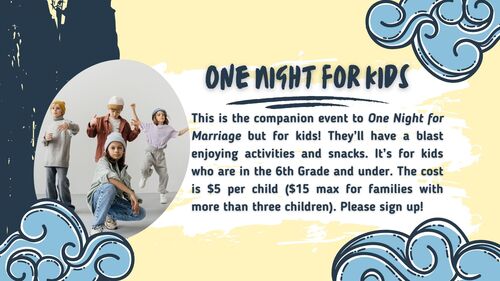 The cost is $30 per couple (married couples only). Please sign up below.